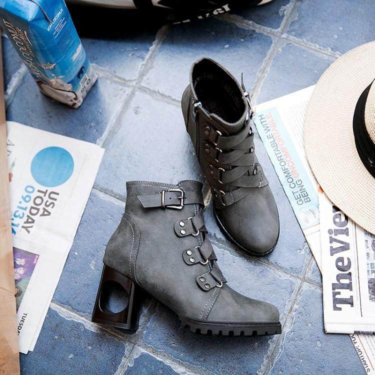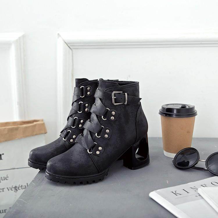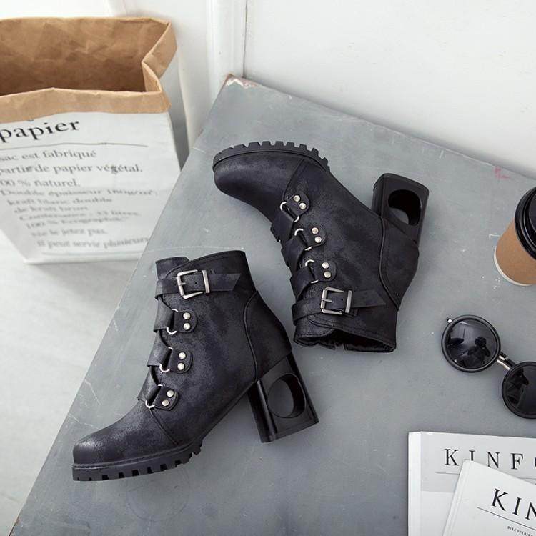 日系帅气原宿暗黑系洛丽塔圆头cos皮鞋马丁靴lolita皮扣短靴43码