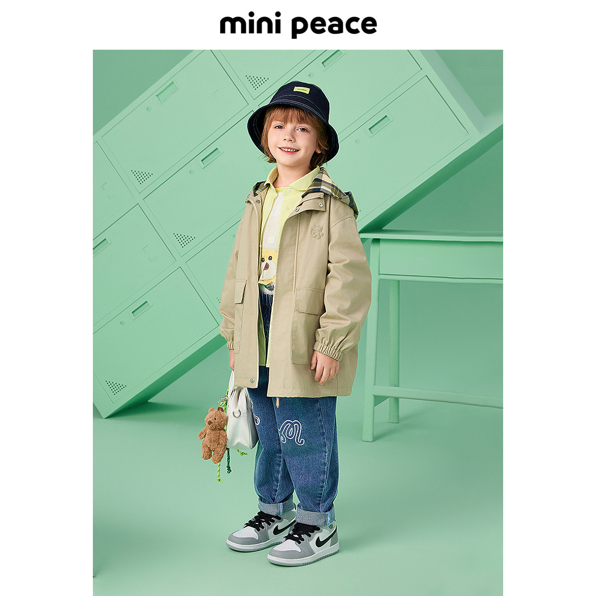 【专柜同款】MINIPEACE太平鸟童装男童外套春秋新款儿童风衣刺绣