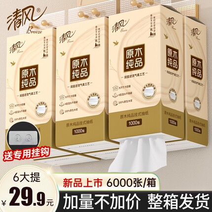 清风悬挂抽纸家用实惠装面巾纸婴儿擦纸卫生纸抽整箱纸巾挂式厨房