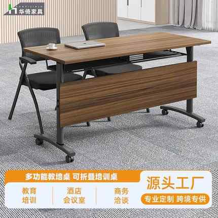 学校折叠培训桌椅组合可移动会议桌学生课桌双人拼接翻板长条桌子