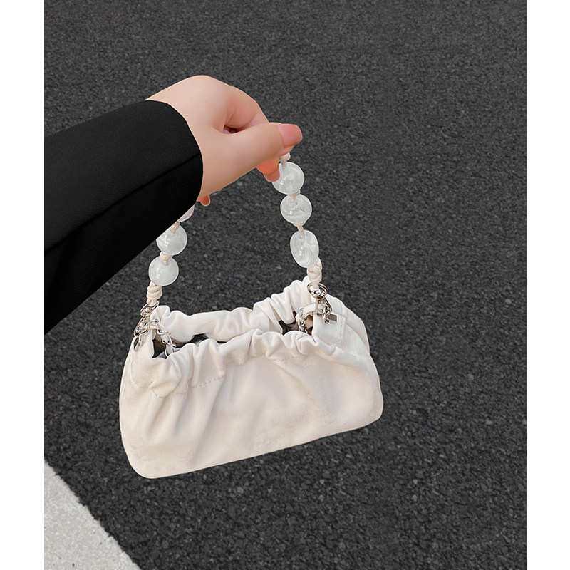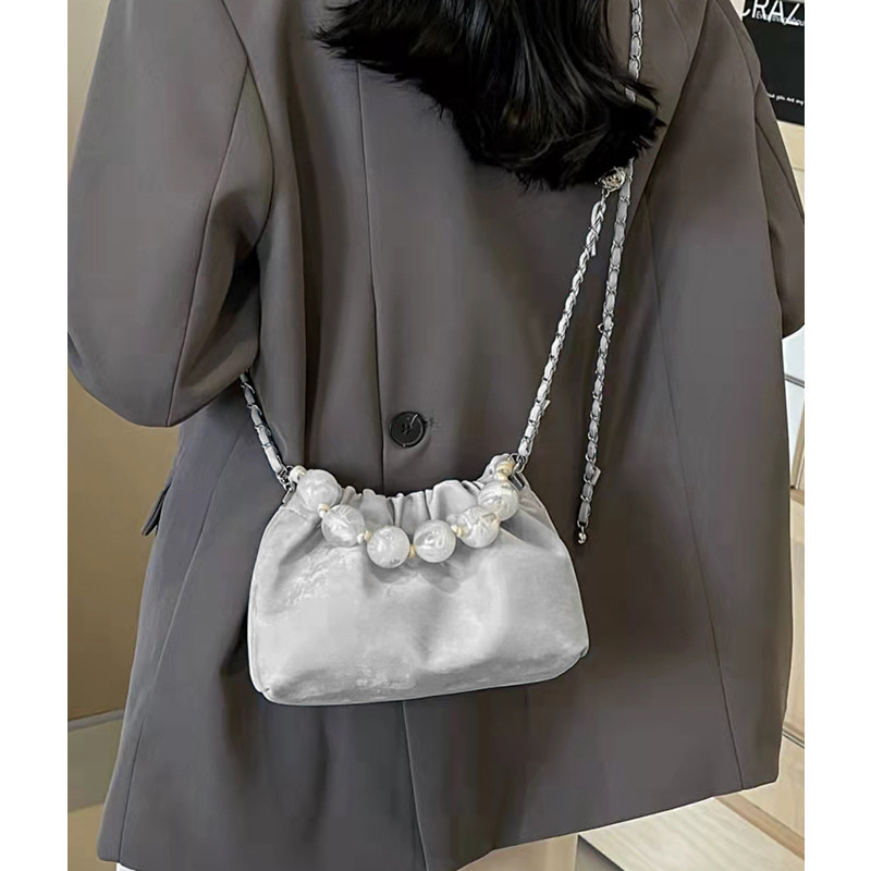 高级感小众包包女夏天2025新款链条单肩斜挎包串珠手提褶皱云朵包