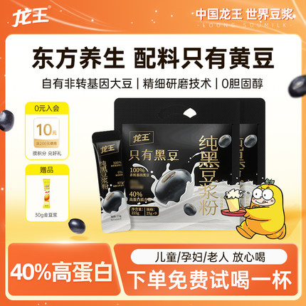 龙王纯黑豆浆粉225g*2袋装原味零添加蔗糖高植物蛋白营养早餐冲饮
