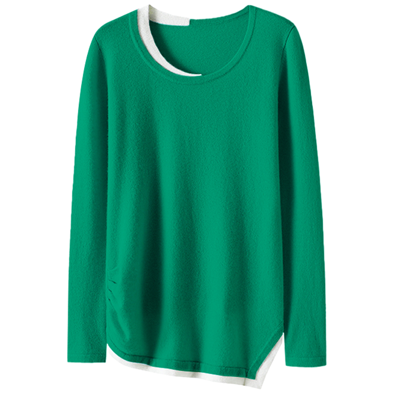 自在从容!100%纯山羊绒衫女圆领假两件羊绒毛衣针织打底衫秋冬