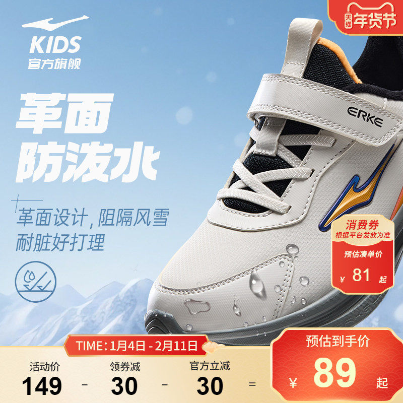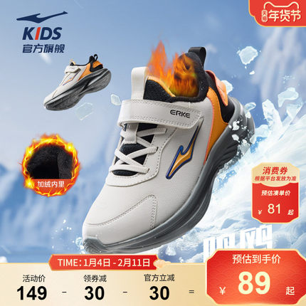 鸣鸥2|鸿星尔克童鞋运动鞋男童秋冬校园保暖鞋子革面防泼水跑步鞋