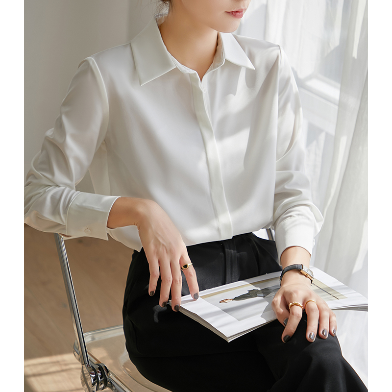 白色衬衫女秋装2025新款高级感职业正装面试衬衣抗皱缎面长袖上衣
