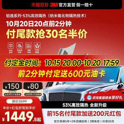 3M汽车贴膜纳米隔热防晒太阳膜前挡非金属侧后车窗全车玻璃膜铂逸