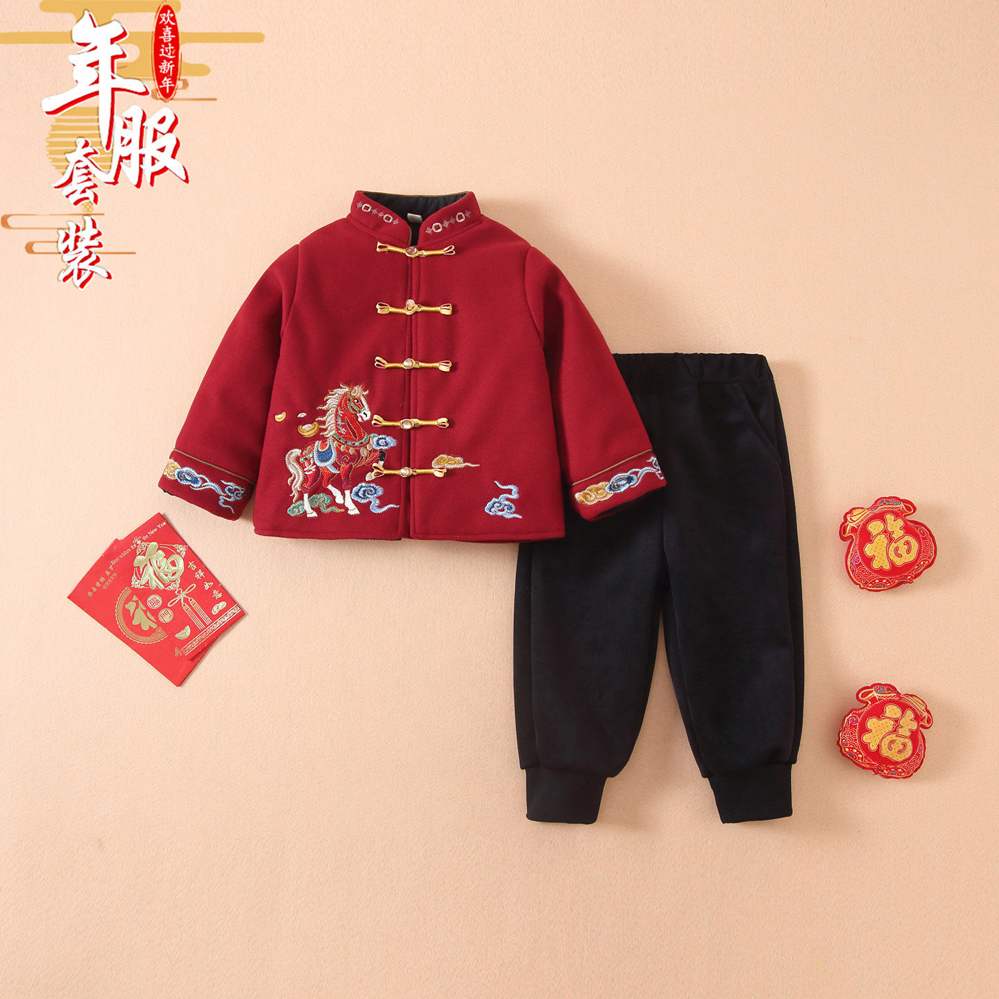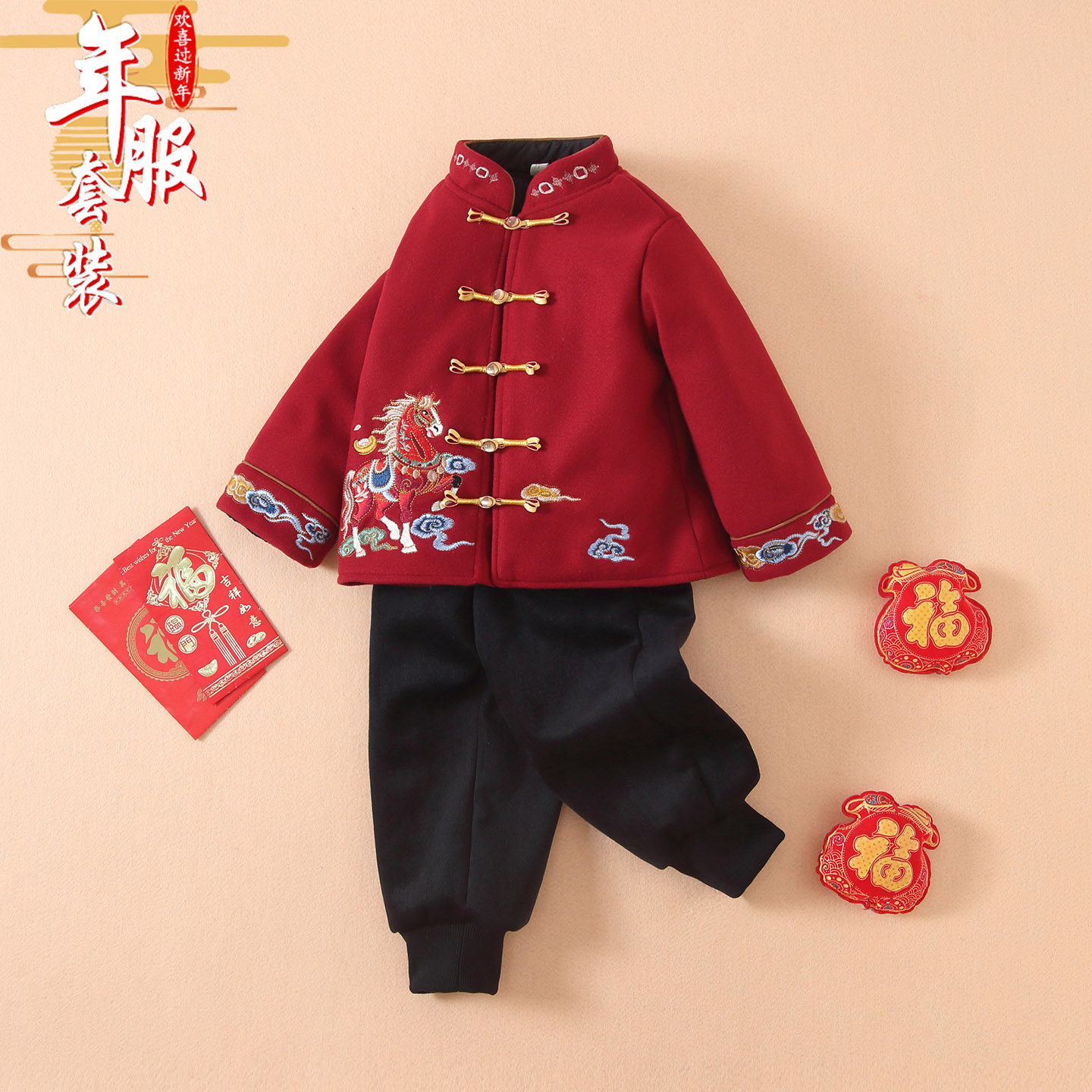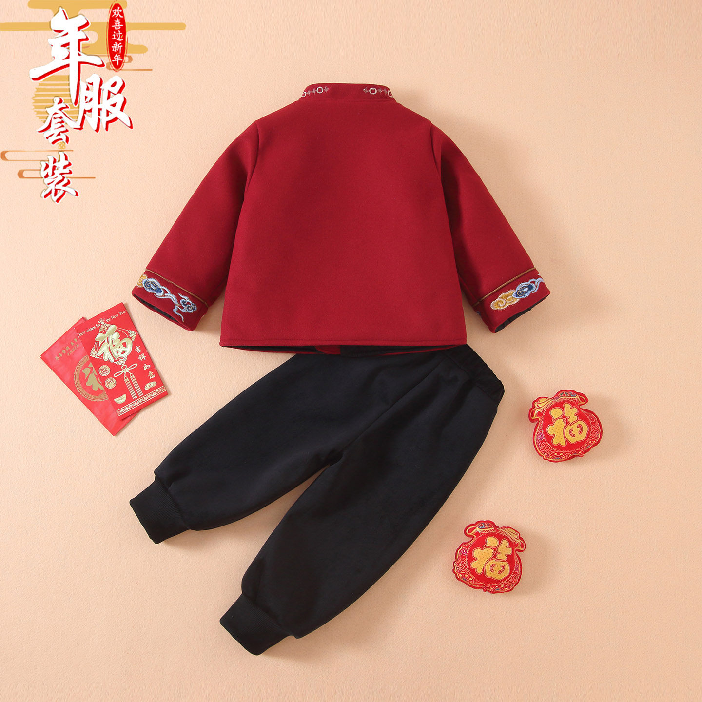 男童拜年服儿童加厚套装冬装唐装男宝新中式古风新年冬季表演服潮