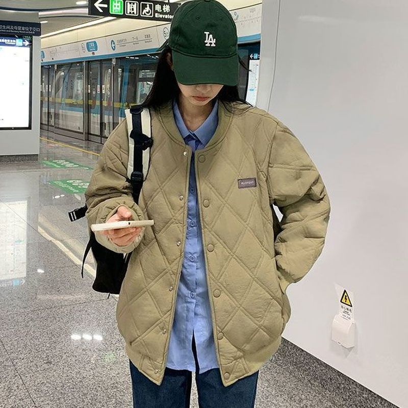 2023年新款冬季棉衣设计感小众棉袄外套菱格棒球薄棉服oversize女