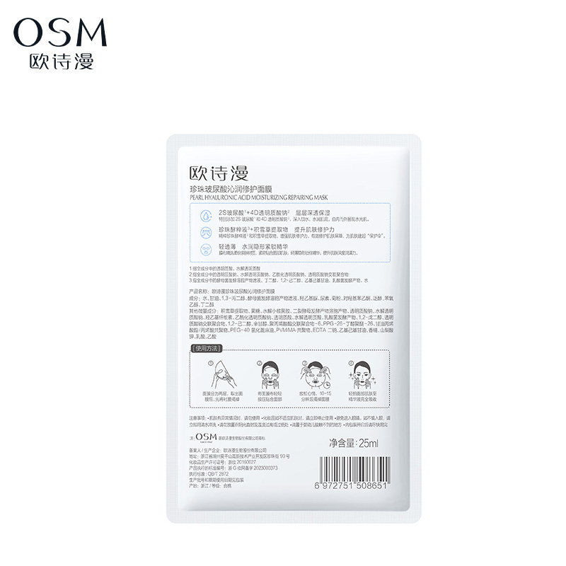 OSM/欧诗漫OSM/欧诗漫玻尿酸沁润修护面膜4片补水保湿熬夜锁水