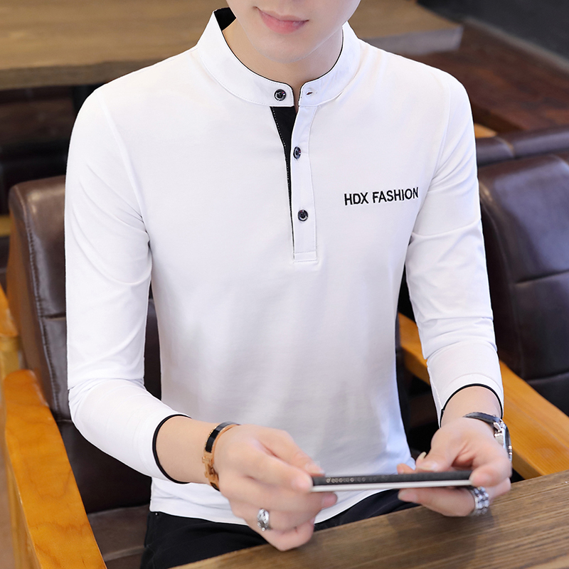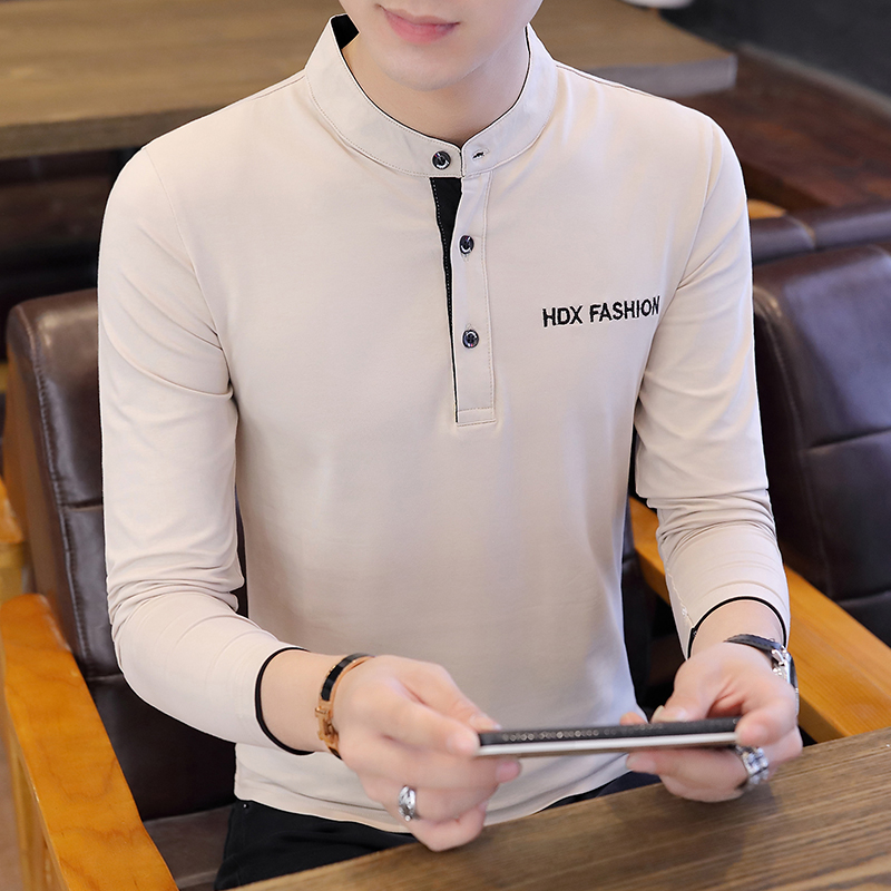 秋季男士长袖T恤潮牌男装丅立领春秋打底衫体恤棉感上衣服POLO衫