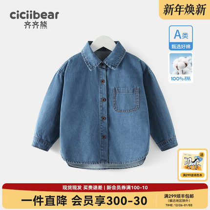 齐齐熊男童牛仔衬衫纯棉儿童春秋童装上衣宝宝休闲衬衣外套春装潮
