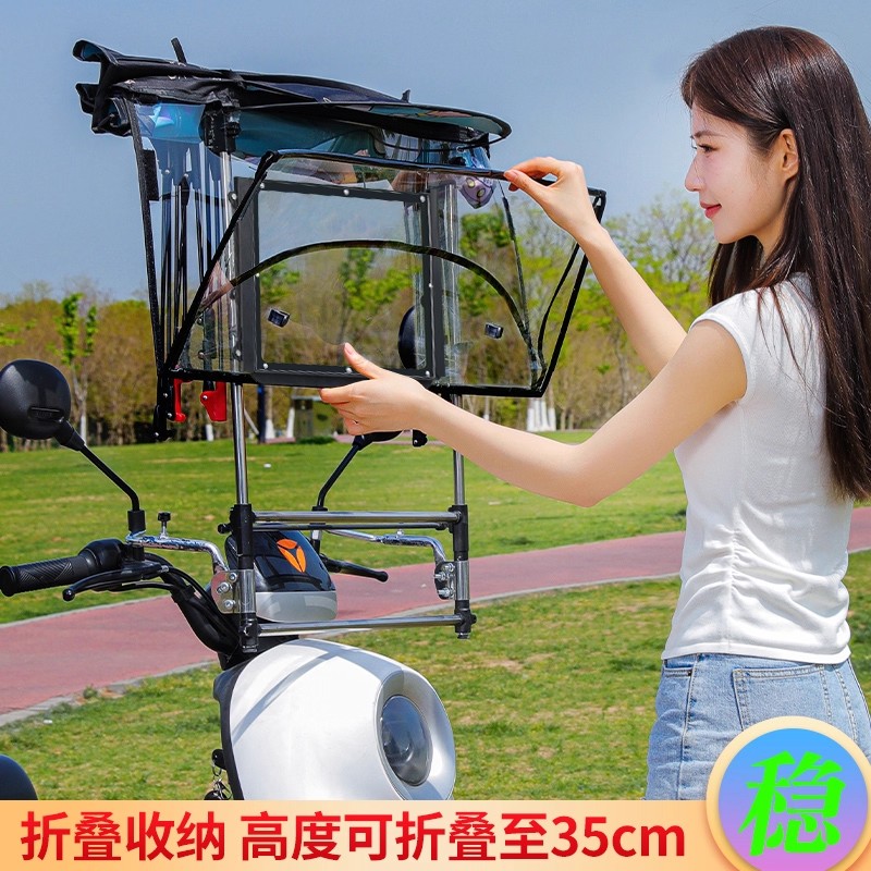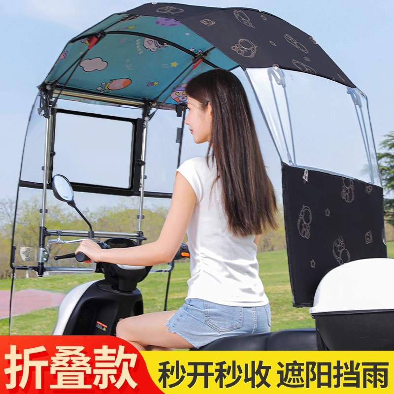 电动车挡雨蓬棚新款防晒防雨电瓶摩托车挡风罩快拆遮阳雨伞可折叠