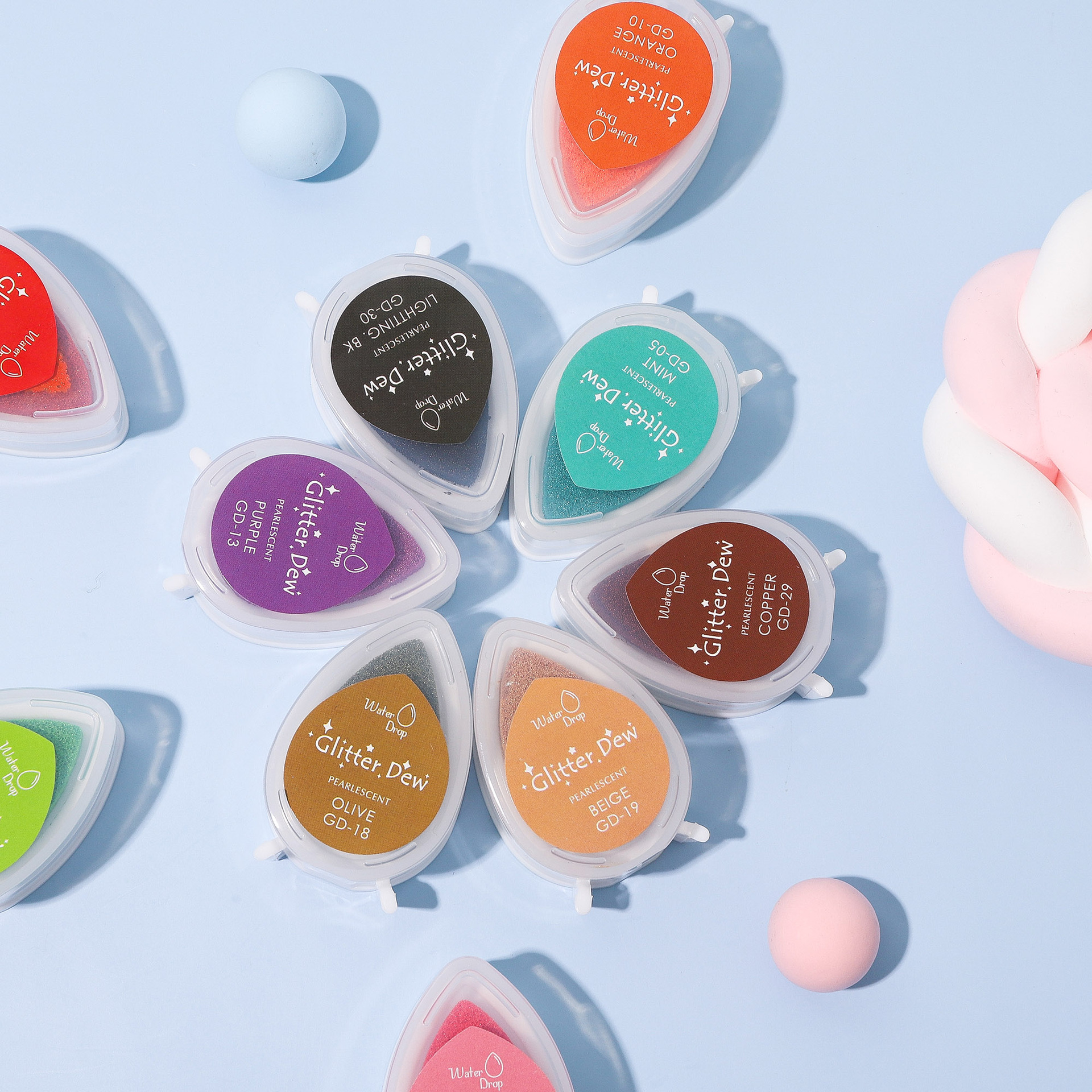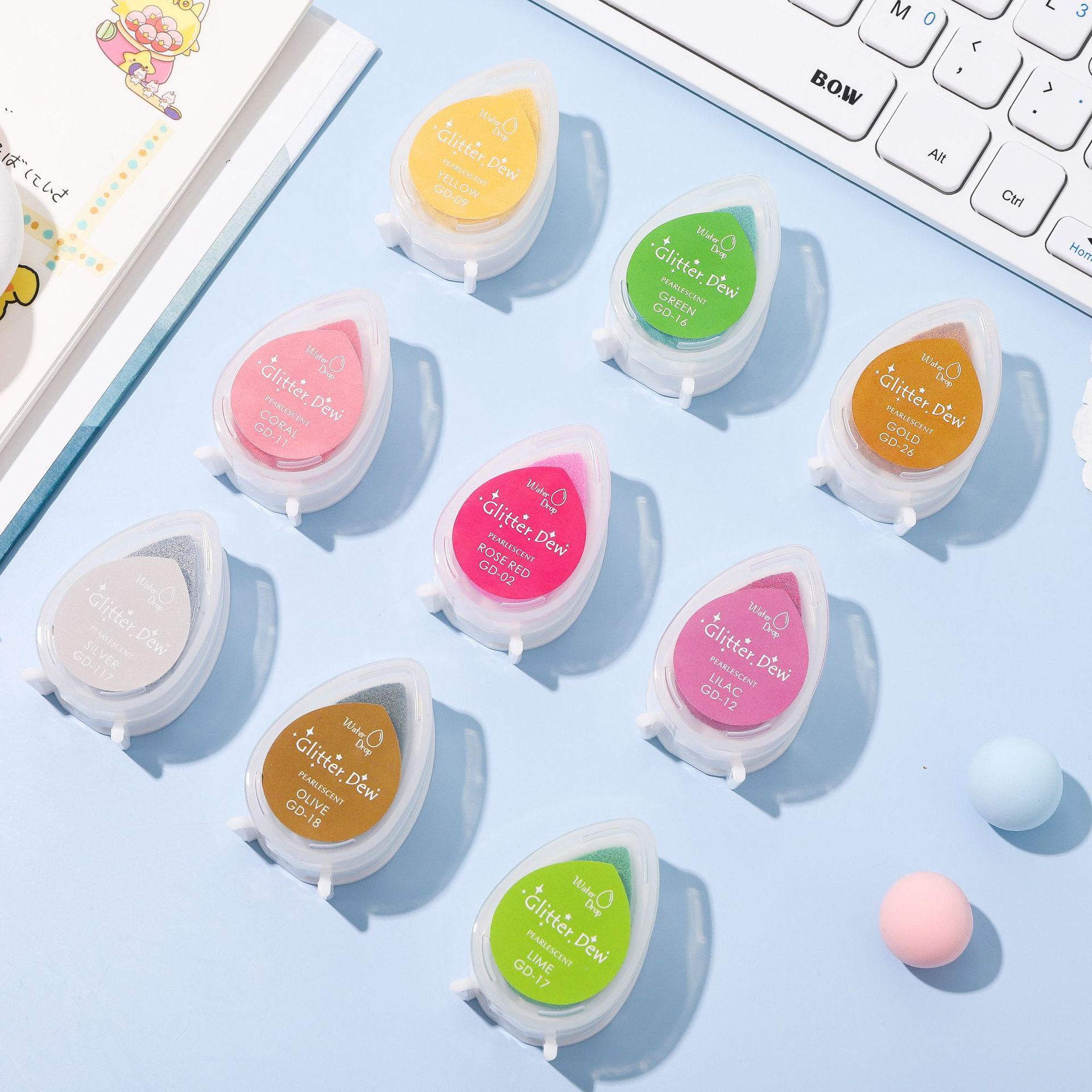 印章用品-国产水滴造型24色GD珠光彩色印泥 手帐DIY儿童印台 印泥