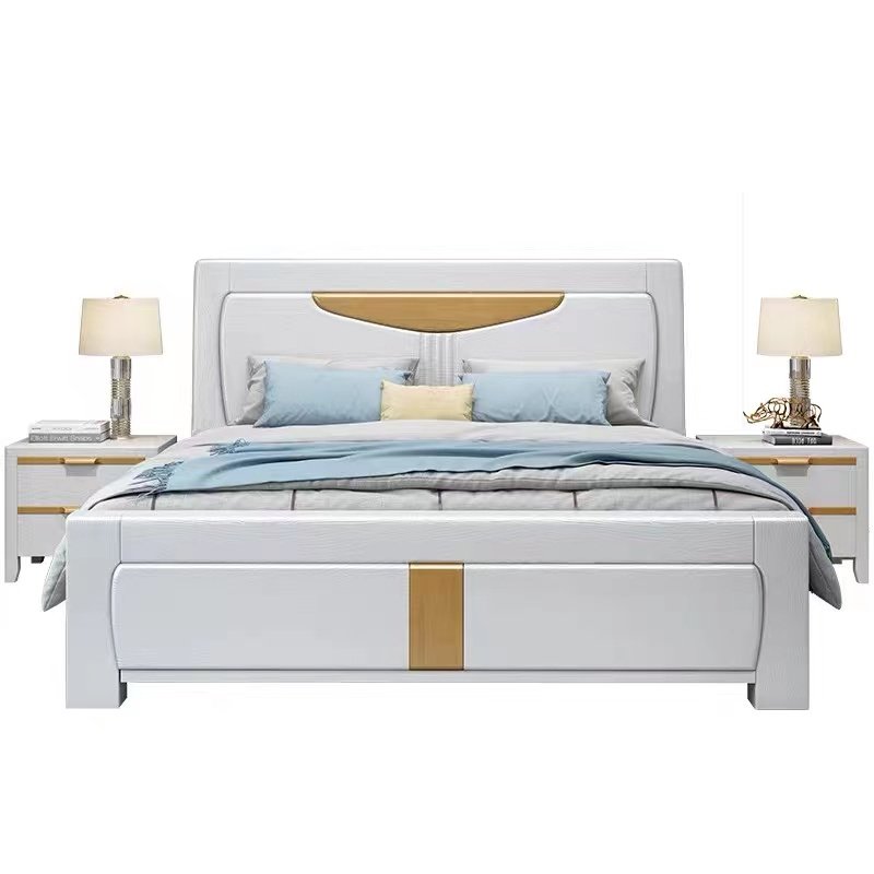 掌上明珠全实木白色主卧1.8米双人简约现代压纹实木床1.5M经济型