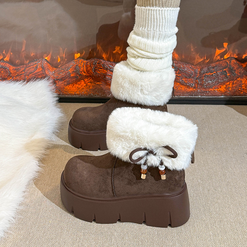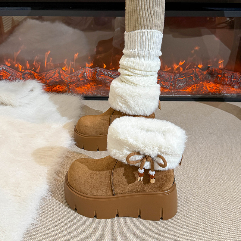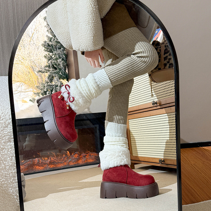 厚底内增高8CM小个子勃肯雪地靴女加绒加厚2025冬季保暖红色棉鞋