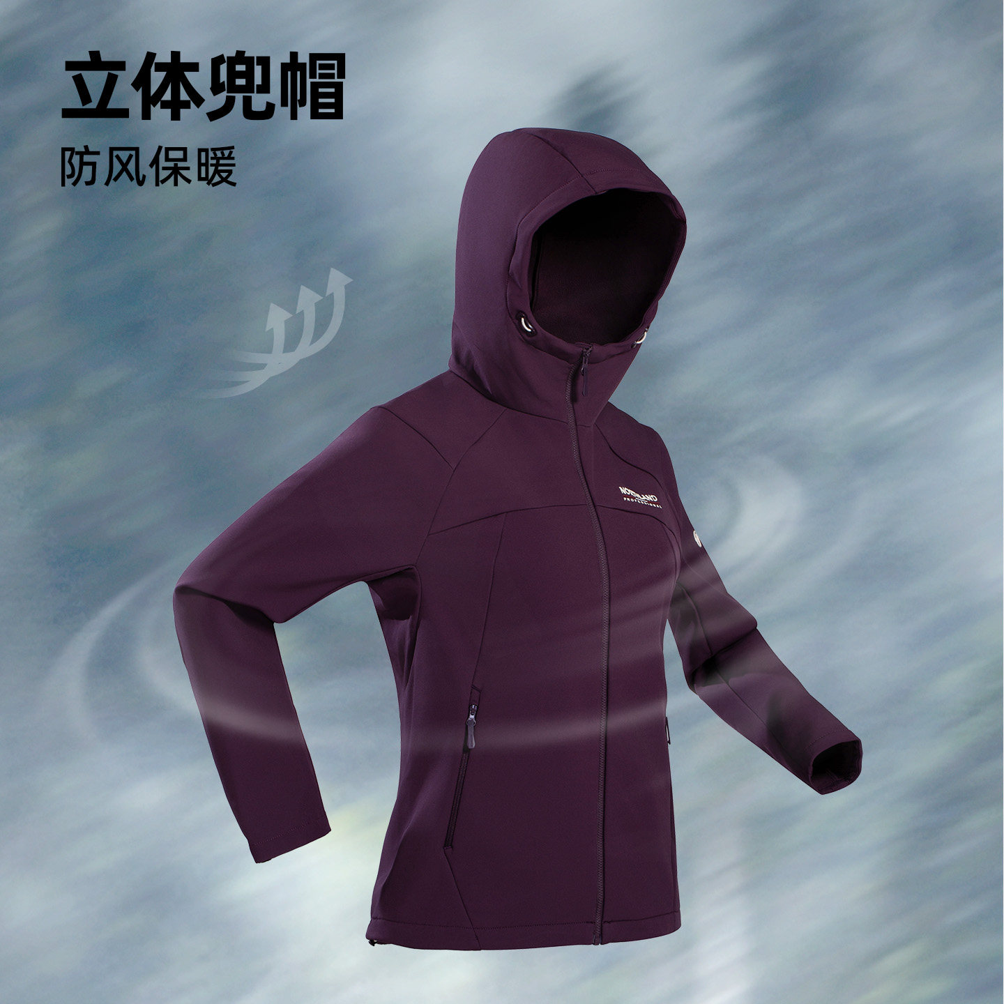 诺诗兰软壳衣女秋冬新款防风防泼透气加绒保暖徒步外套NTJFH2856S