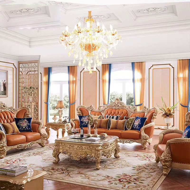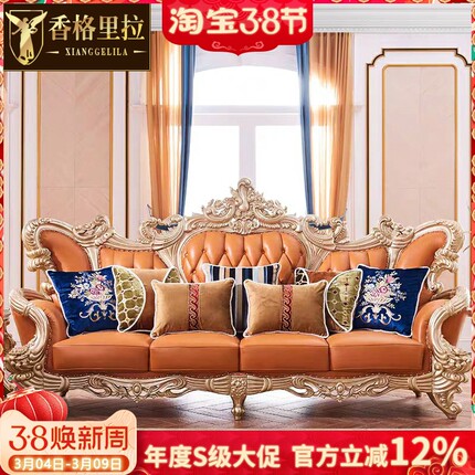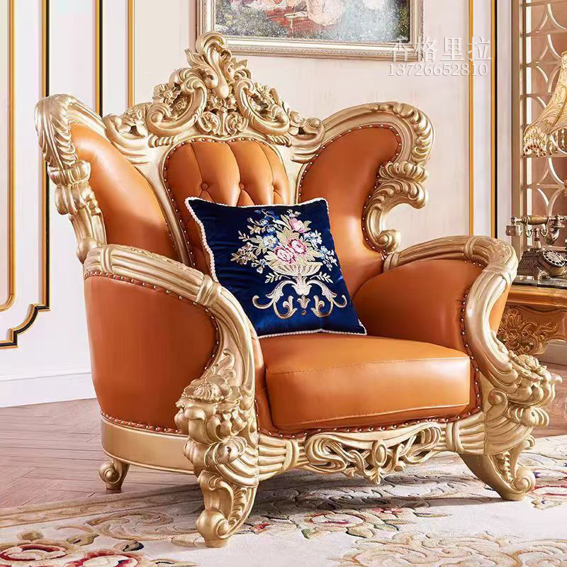 欧式真皮沙发美式别墅实木雕花奢华古典高档客厅高级定制皮艺沙发