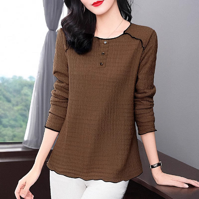 长袖t恤女春秋新款中年妈妈圆领肌理上衣大码胖mm宽松女士打底衫