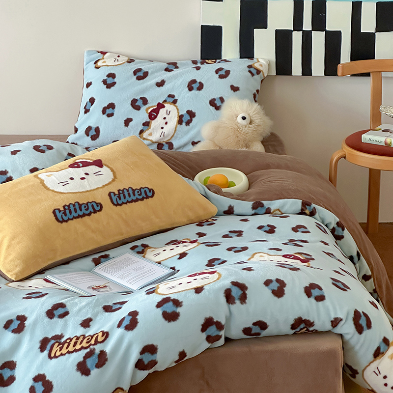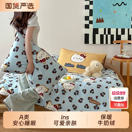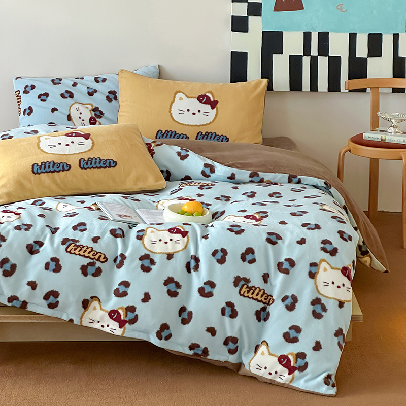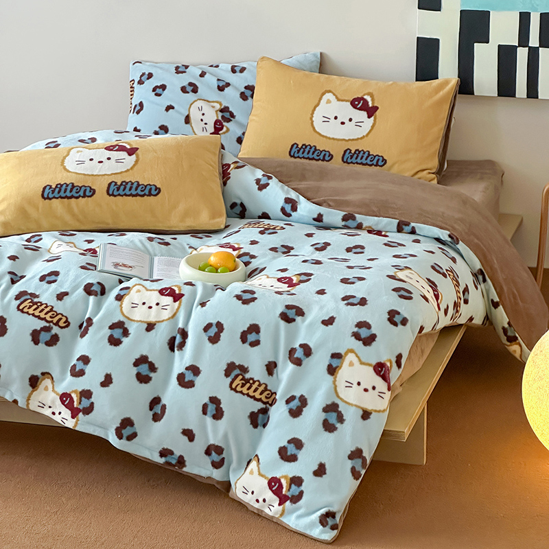 牛奶绒床上四件套超可爱亲肤保暖秋冬季床单笠被套三件套混搭卡通