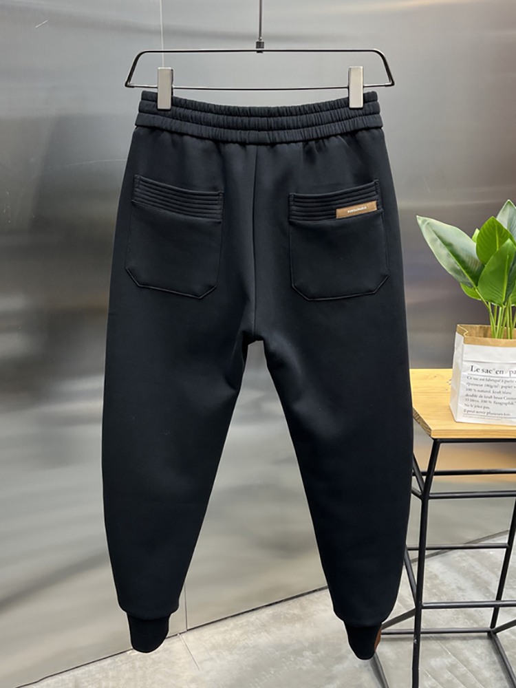 秋冬季男士加绒加厚黑咖色刺绣束脚卫裤百搭韩版修身小脚休闲裤子
