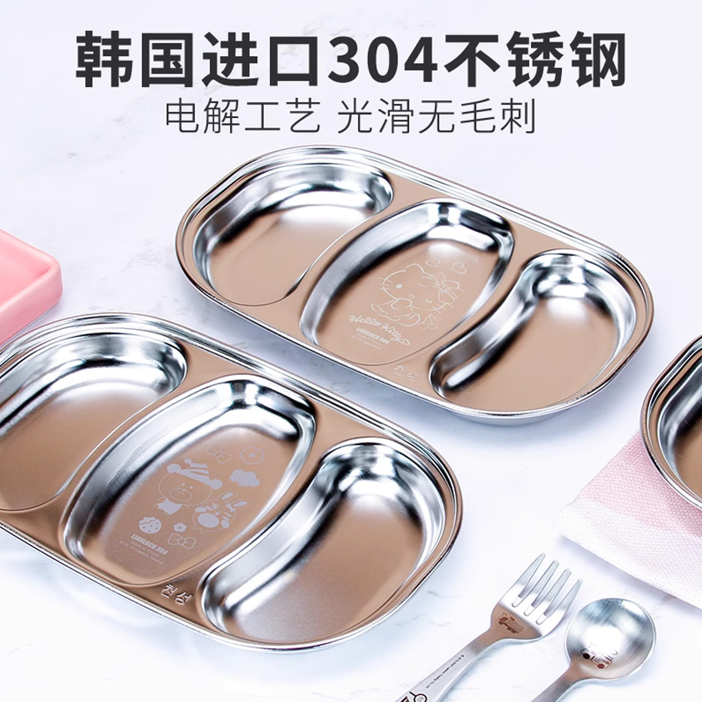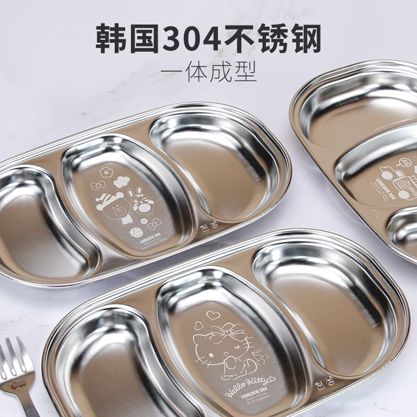 联扣韩国进口不锈钢幼儿园餐盘