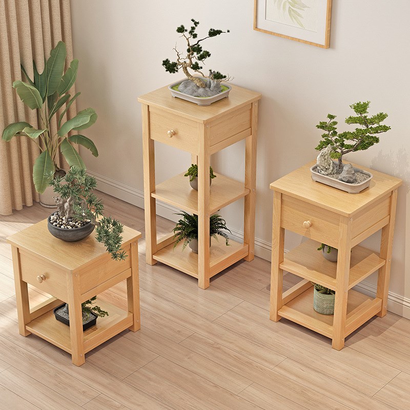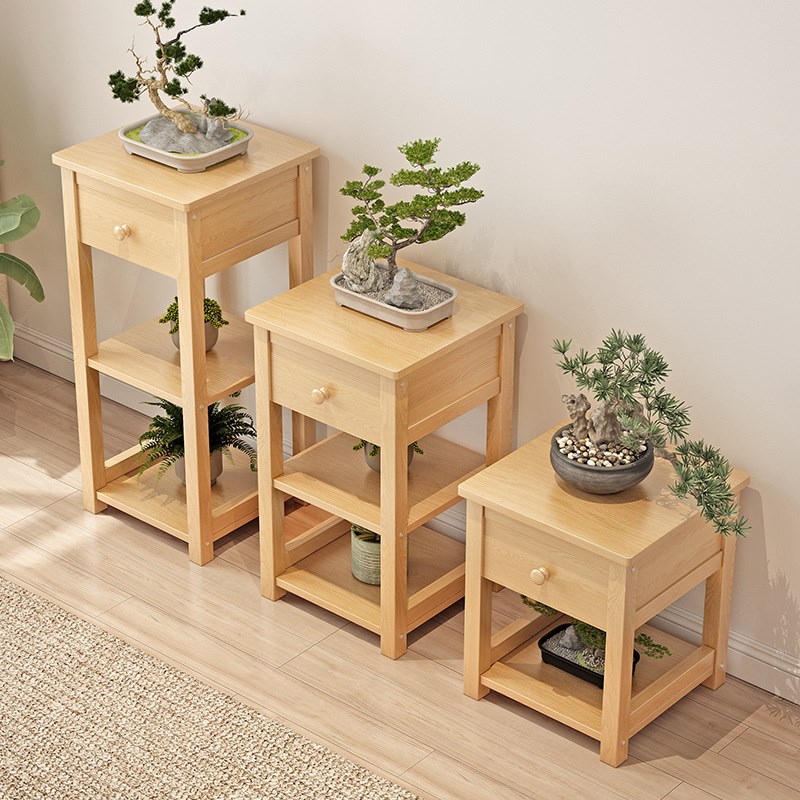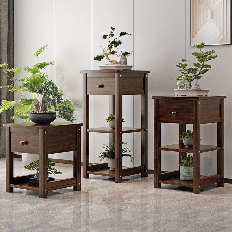 中式实木带抽屉花凳客厅落地式木质花盆架室内阳台简约风花盆托架
