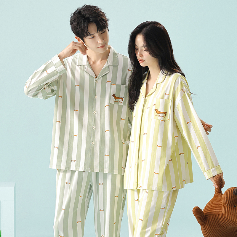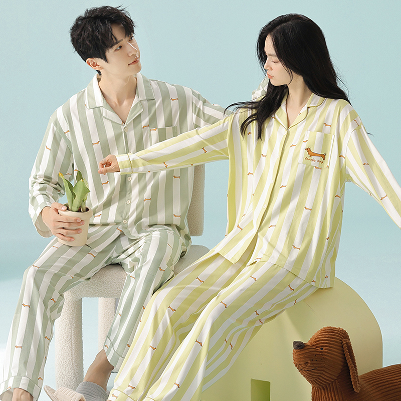 芬腾情侣春秋季纯棉长袖睡衣套装