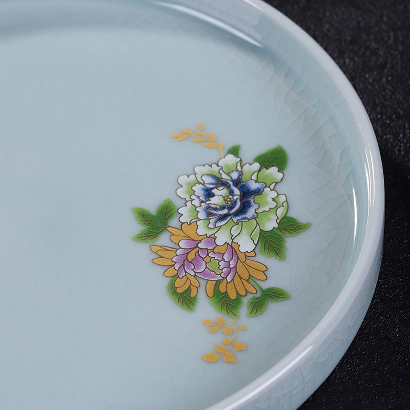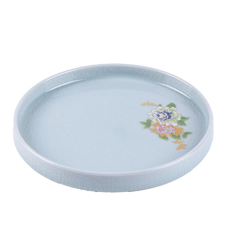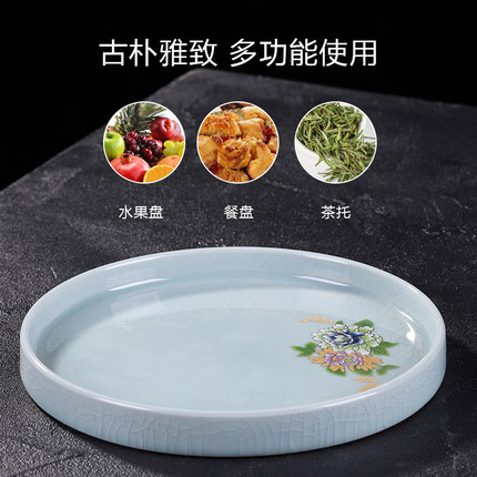 日式花盘陶瓷拖盘底座酒具托盘茶盘摆件圆盘移动杯子托盘水果盘