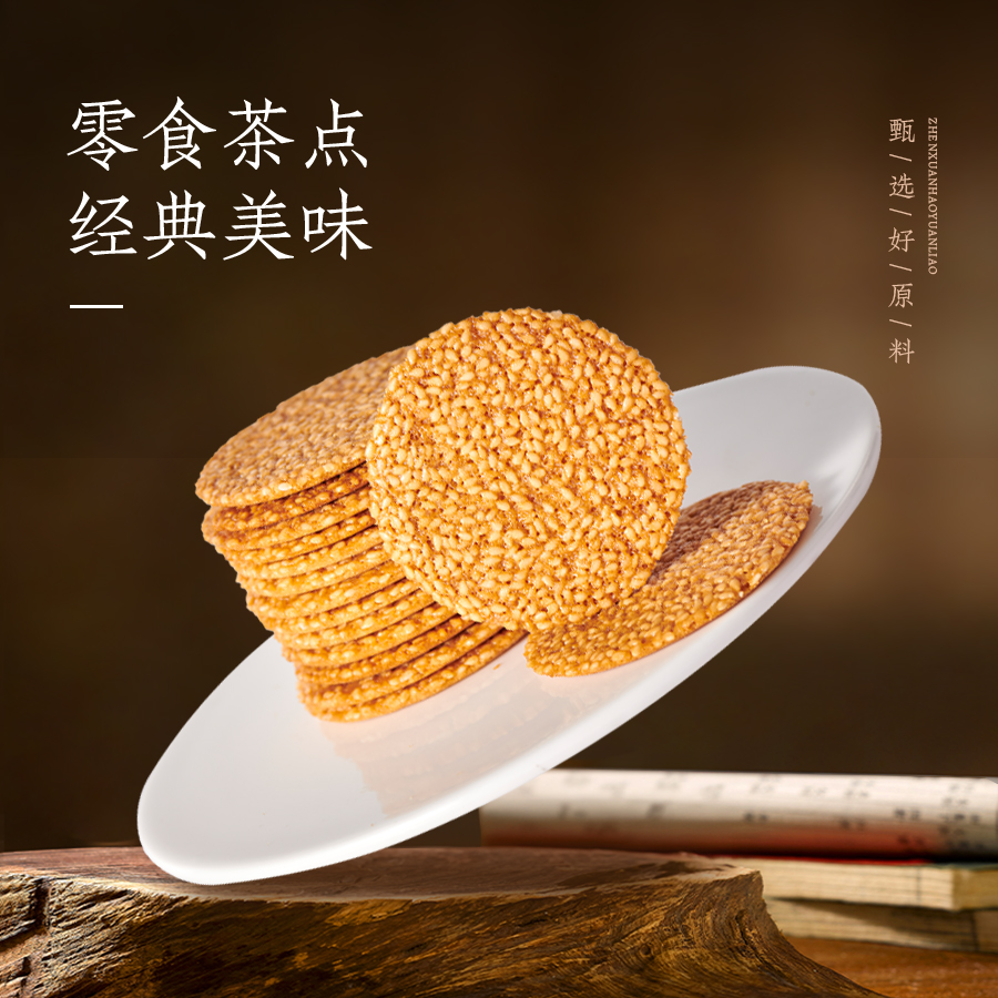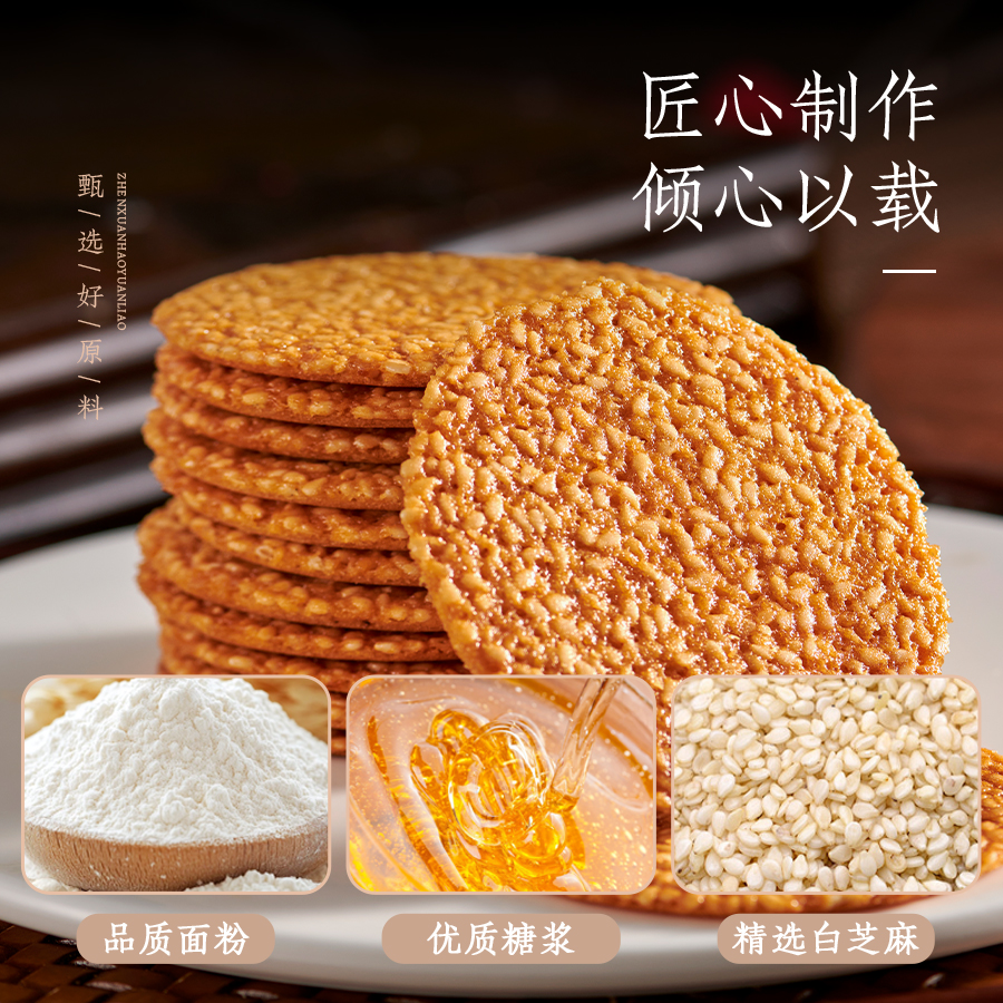 稻香村特产芝麻瓦片300g独立小包装零食点心薄脆饼干休闲零食糕点