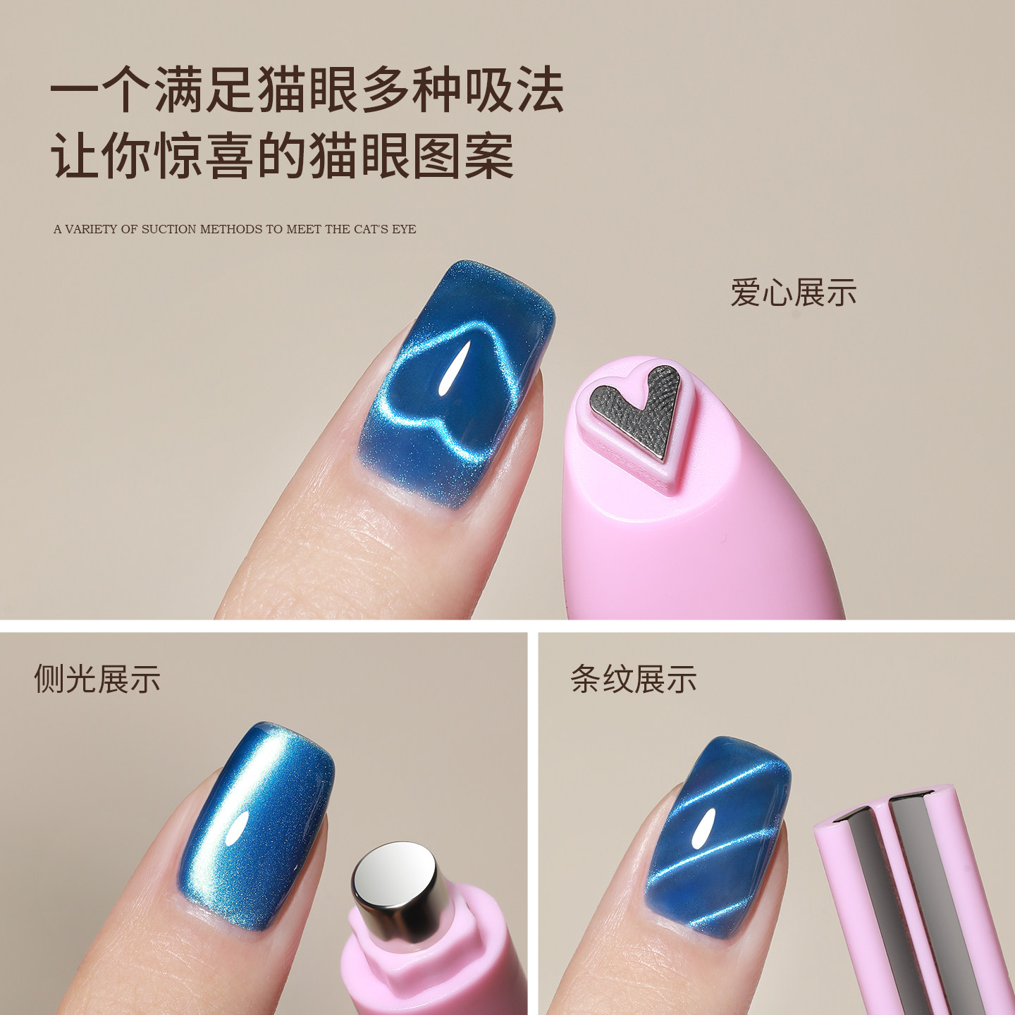 恩妮诗美甲爱心猫眼磁铁心形玻璃珠蛇纹强力可拆卸美甲吸铁石工具