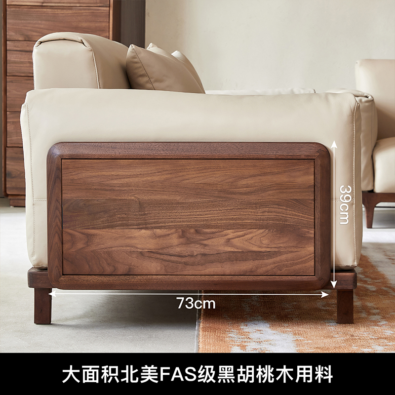 北美黑胡桃木沙发真皮现代简约客厅大户型直排沙发实木轻奢四人位