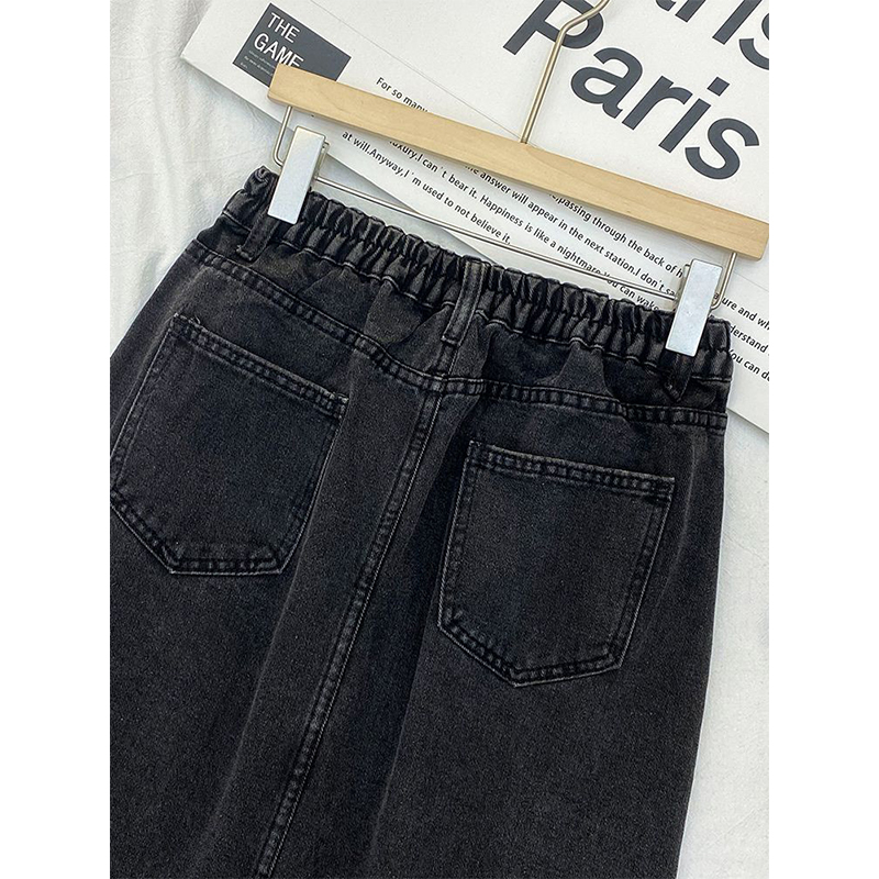 300斤大码女装爱心开叉牛仔半身裙女夏季胖mm黑色裙子显瘦a字半裙