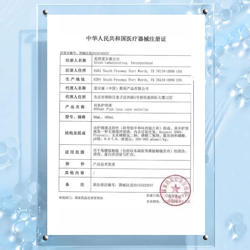 爱尔康蓝澈双氧水护理液360ml角膜塑形镜ok镜护理液RGP硬性隐形镜