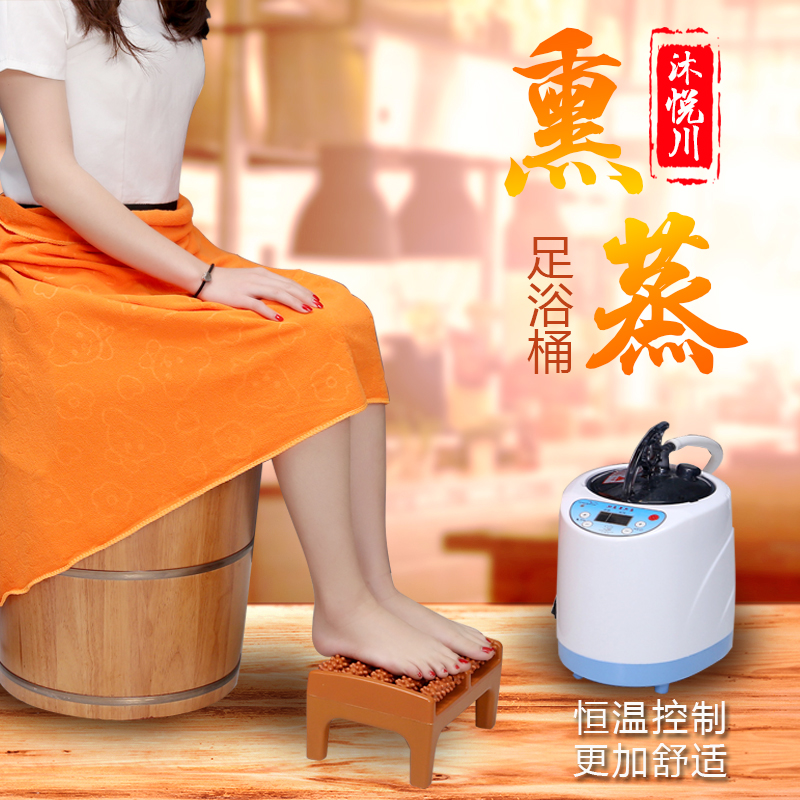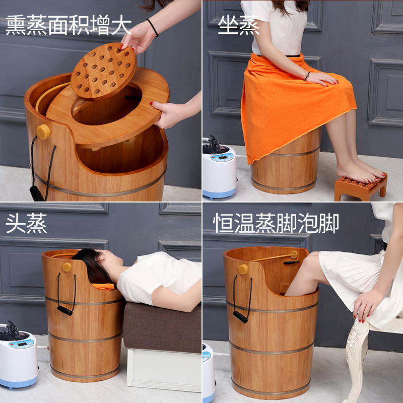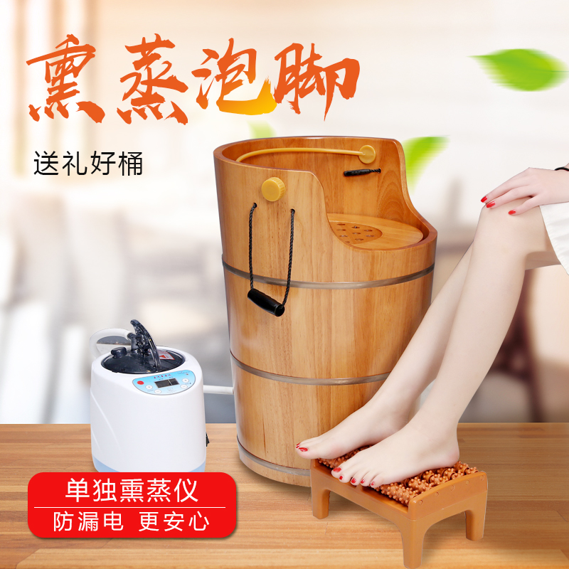橡木熏蒸桶家用实木足浴桶足浴盆泡脚盆足疗蒸汽蒸脚桶泡脚桶木桶