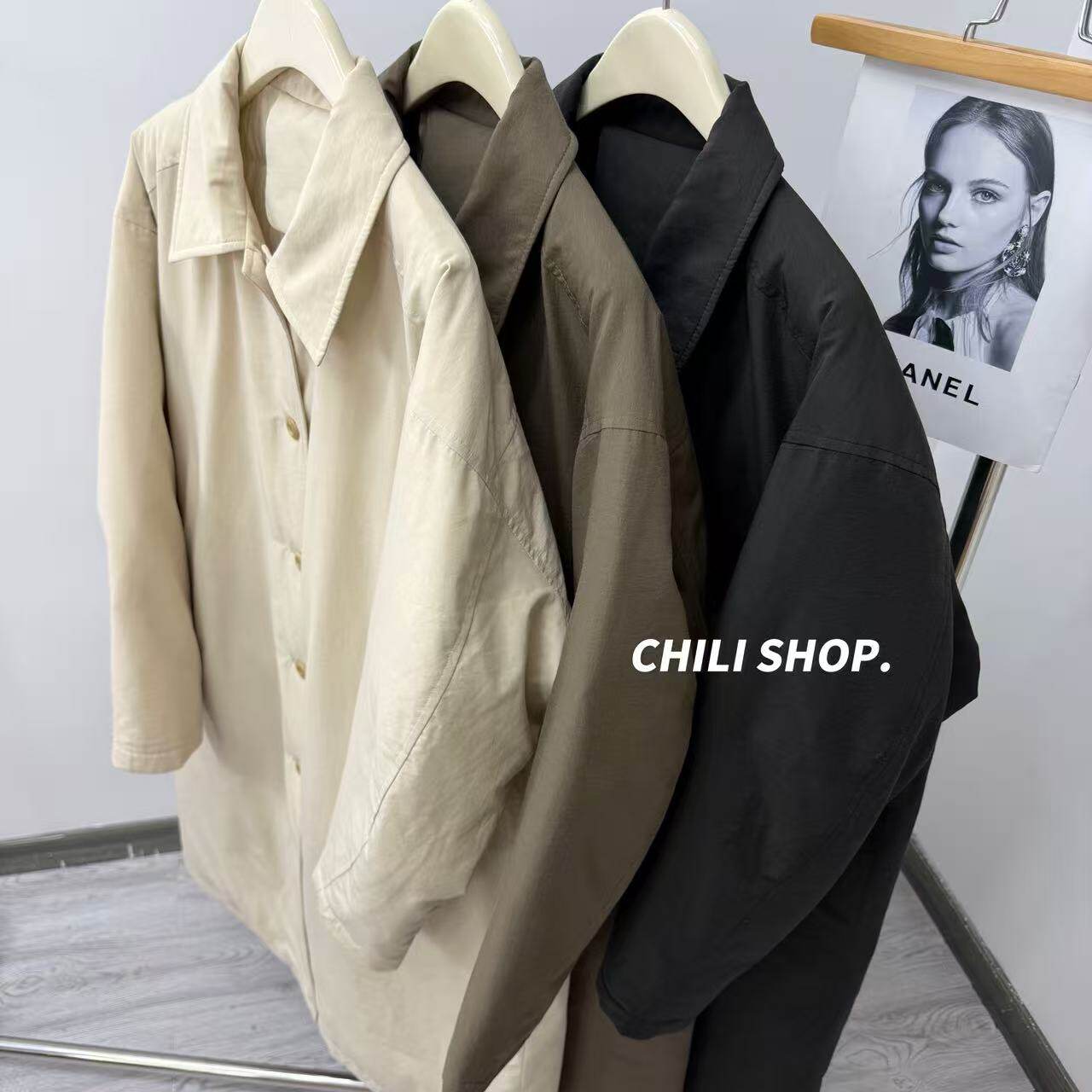 【英英Chili】复古极简风欧货白鹅绒长款风衣羽绒服PH 12.18