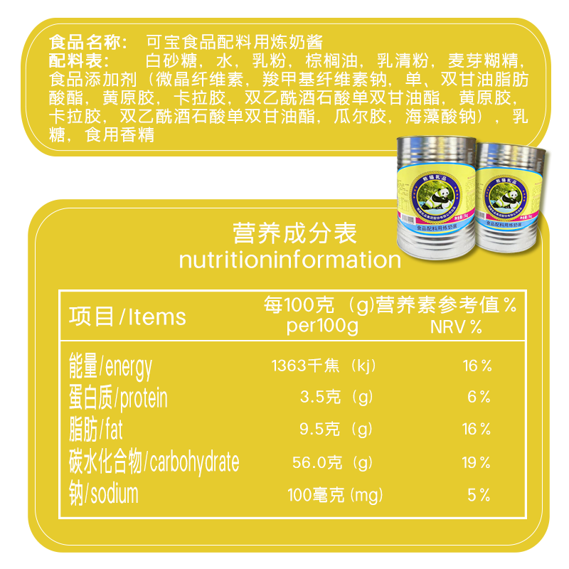 熊猫可宝炼奶酱5kg/2.5kg/奶茶店咖啡厅炼乳烘焙商用大桶panda