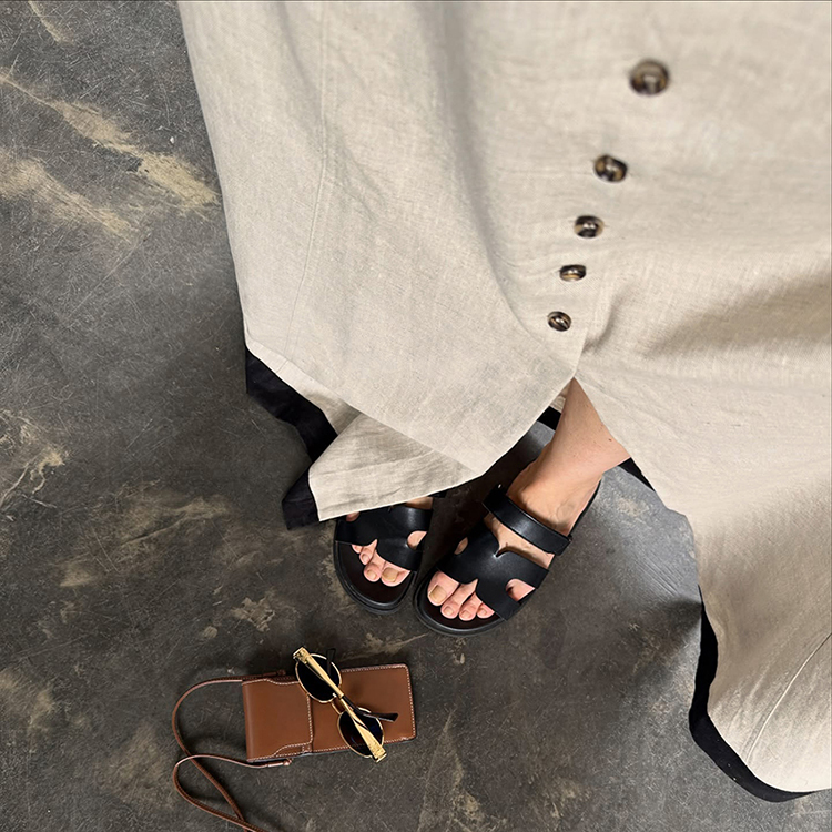 Holiday Dress棉麻撞色抹胸长裙宽松遮肉显瘦卡其色拖地连衣裙