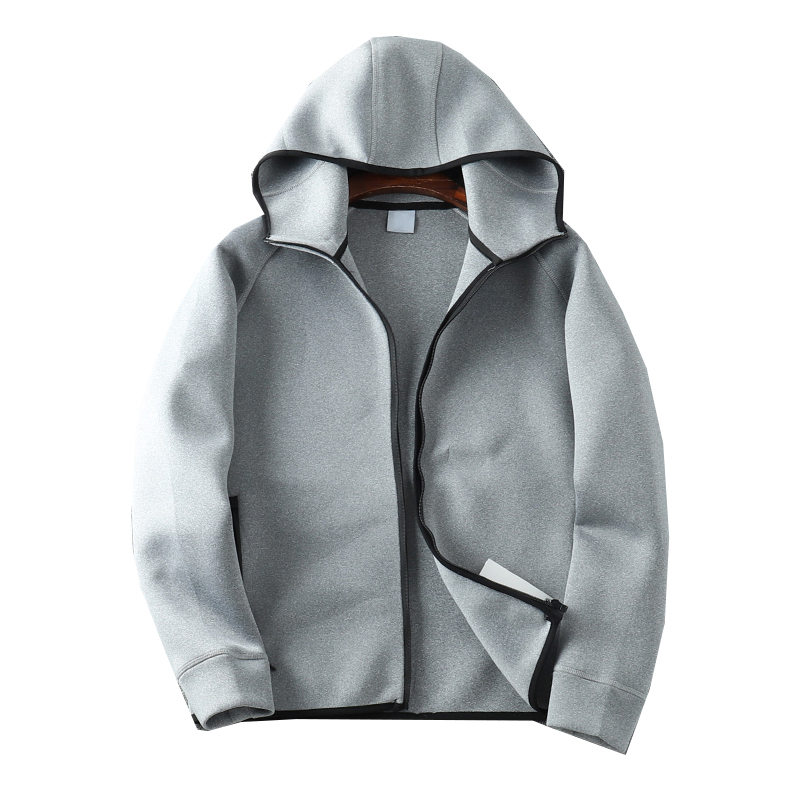 弹力空气层!春秋外贸男士运动休闲百搭纯色百搭连帽开衫卫衣外套