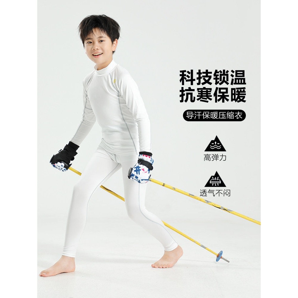 冬季儿童高领紧身速干衣男女孩滑雪加绒保暖内衣篮球打底运动套装