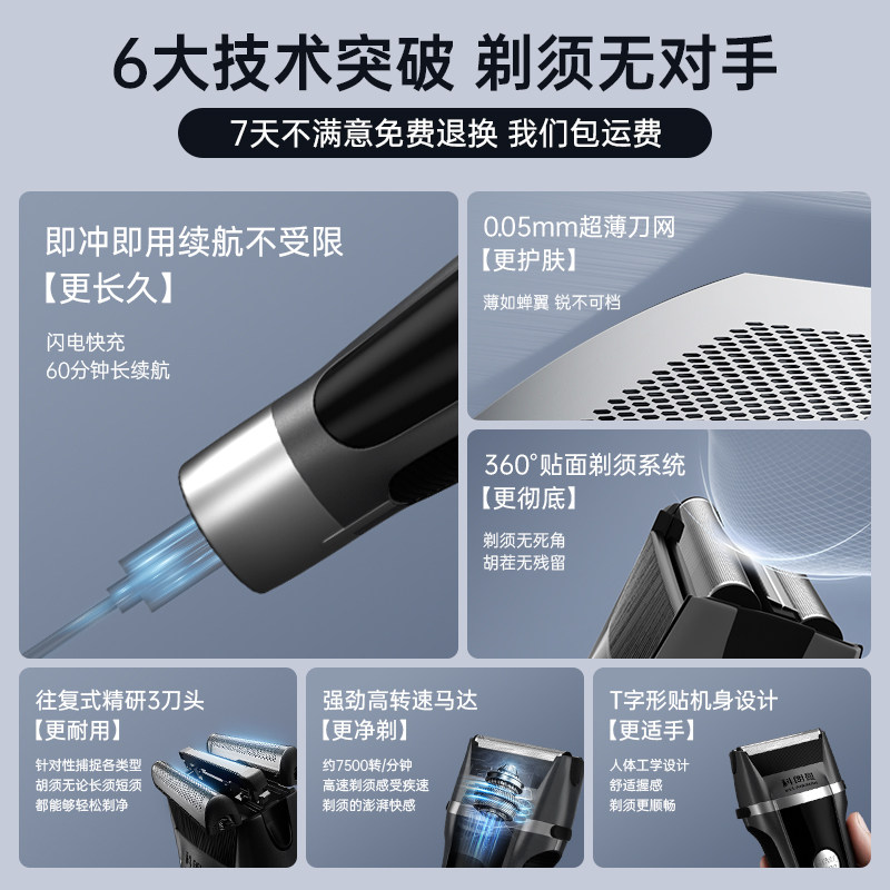 科朗曼剃须刀过节礼物男士剃胡须刀通用刮胡刀官方正品电动往复式