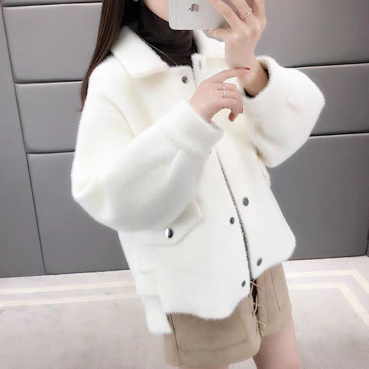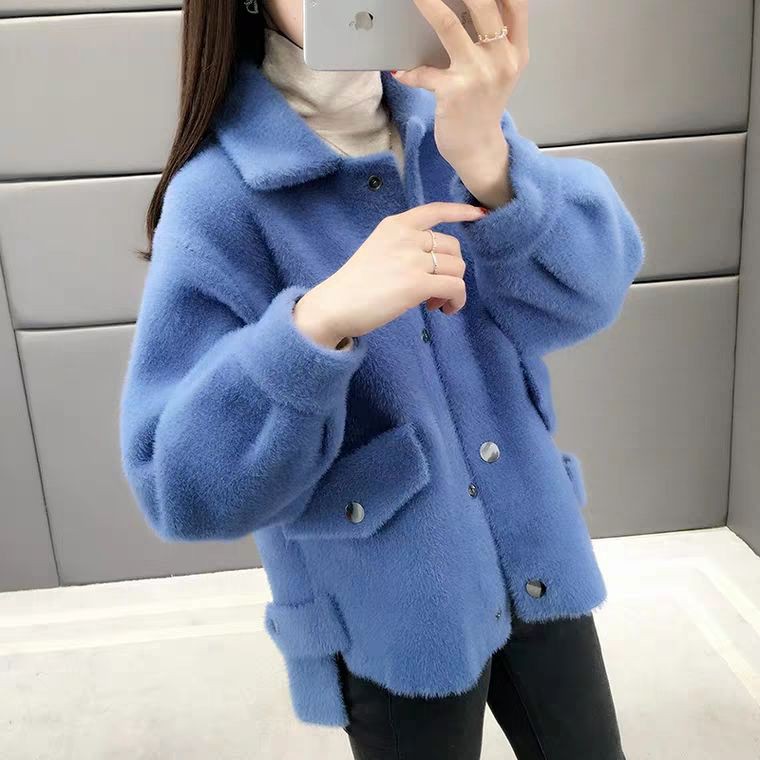 仿水貂绒女士短外套2024年新款毛衣冬季女装韩版宽松外穿百搭开衫