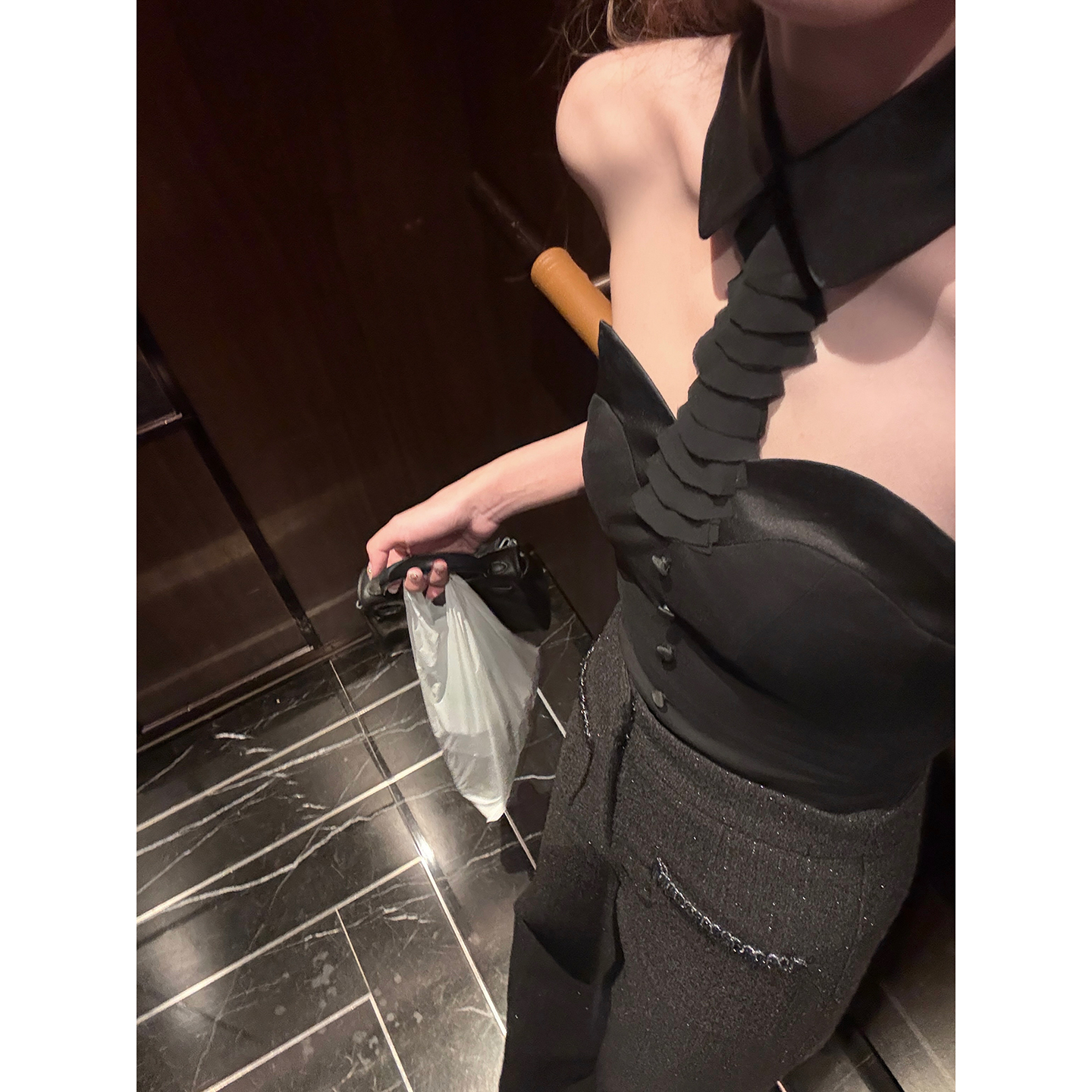 Boamarket 黑色挂脖翻领上衣短款收腰时尚修身性感纯欲抹胸背心