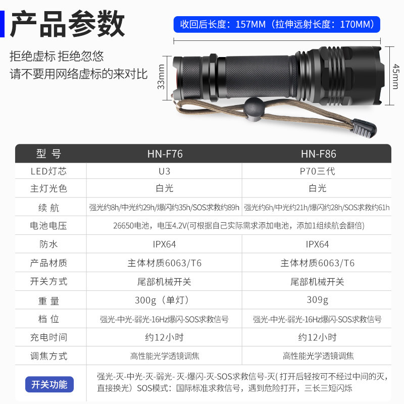 战术便携小小型探照灯强光手电筒