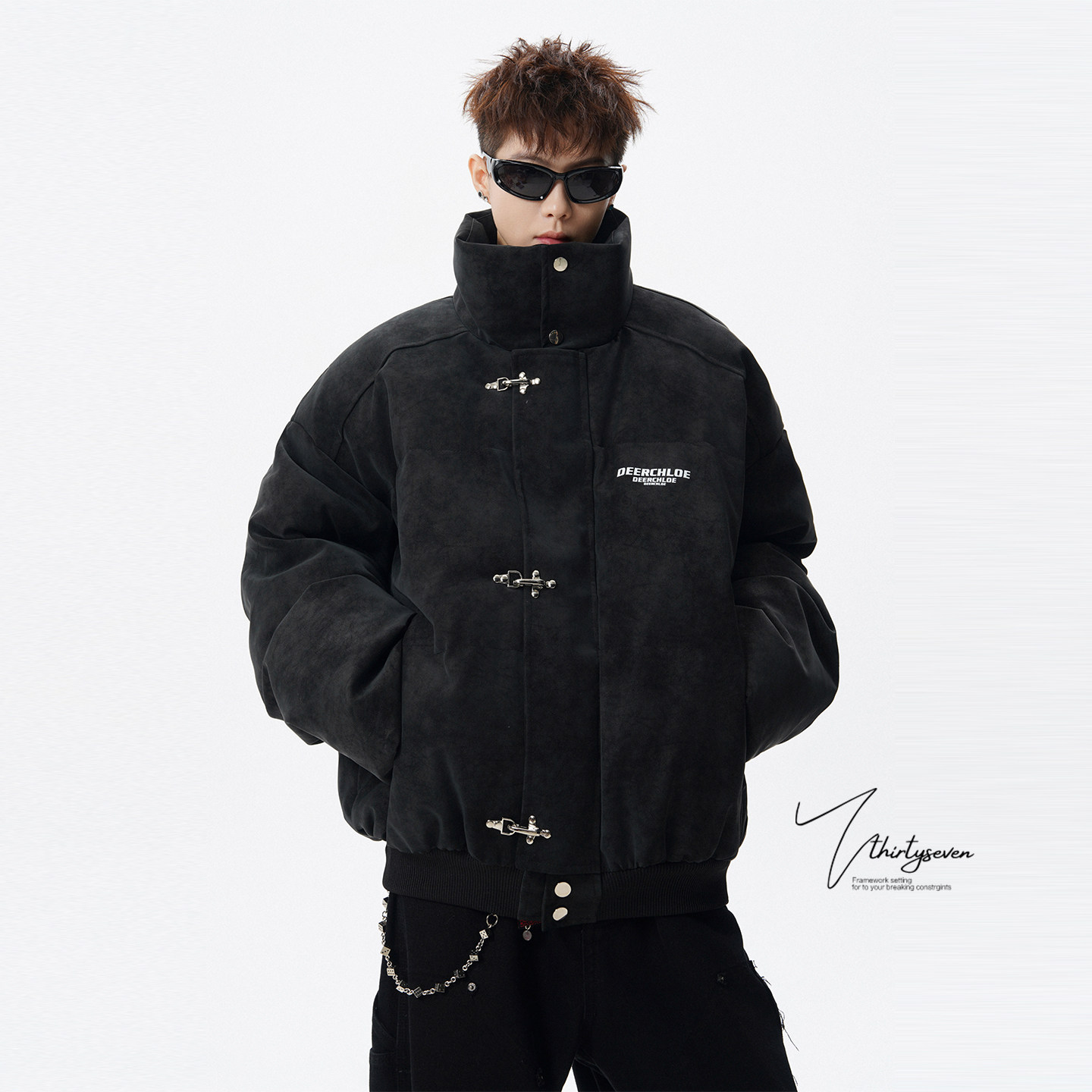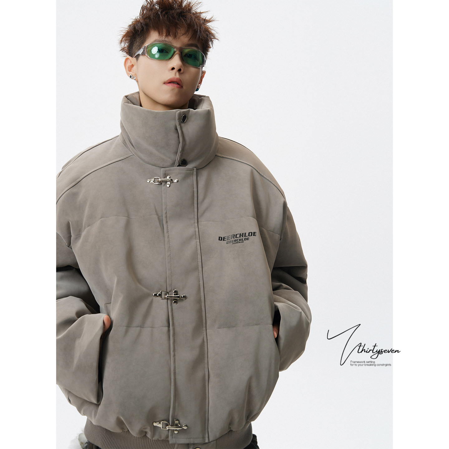 V37美式复古立领短款棉衣男冬季高街vibe宽松百搭情侣面包服外套
