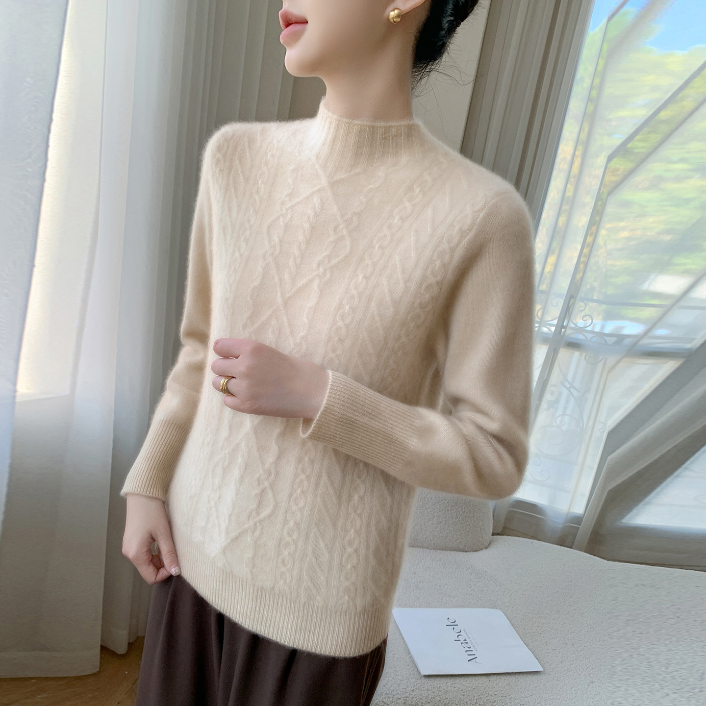 空气感山羊绒衫女半高领软糯毛衣纯色通勤长袖针织羊毛亲肤打底衫