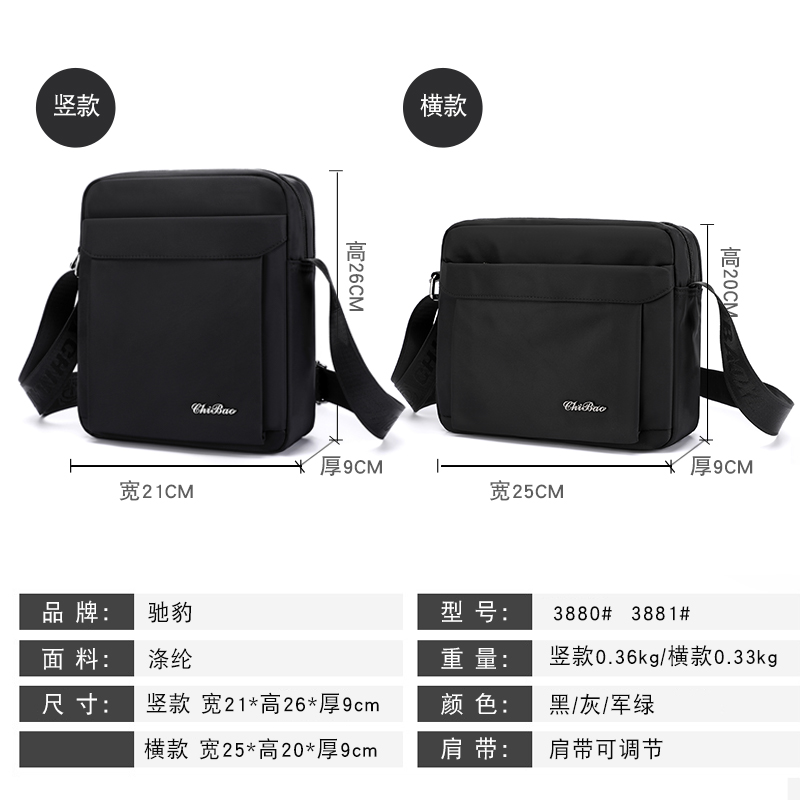 驰豹男士斜挎包单肩包休闲多功能背包牛津布包包帆布男包商务旅行