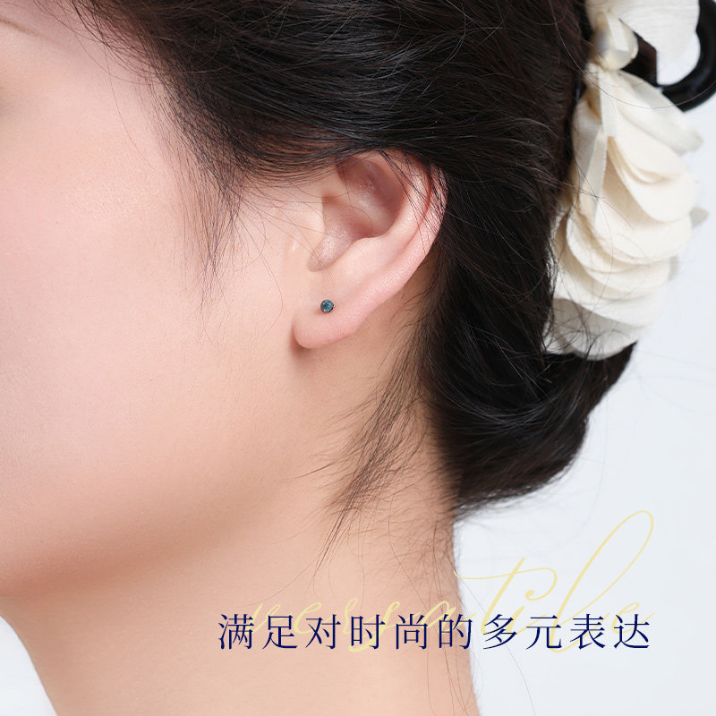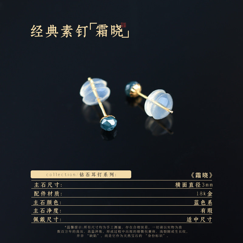 可卿珠宝 霜晓 钻石耳钉18k金蓝钻耳饰彩宝正品宝石耳钉礼女
