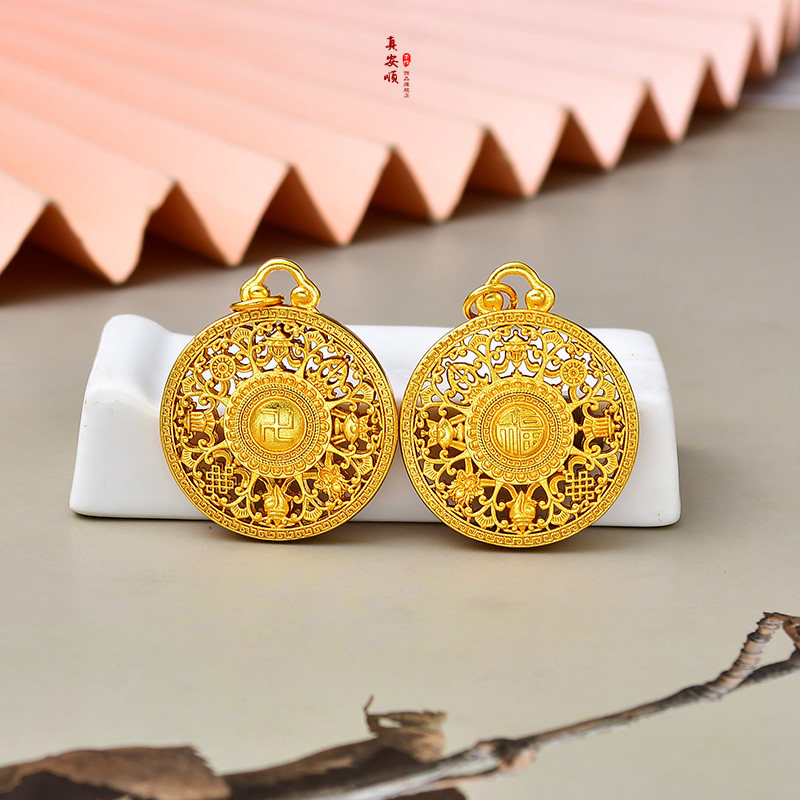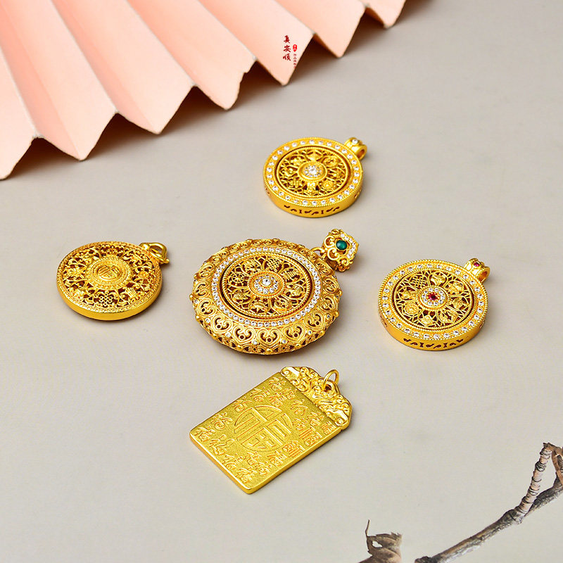 黄金18k足金999色八宝罗盘旋转坠