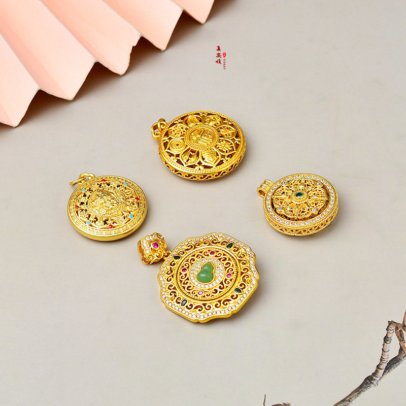 黄金18k足金999色八宝罗盘旋转葫芦镂空项链吊坠古风配饰配件镀金