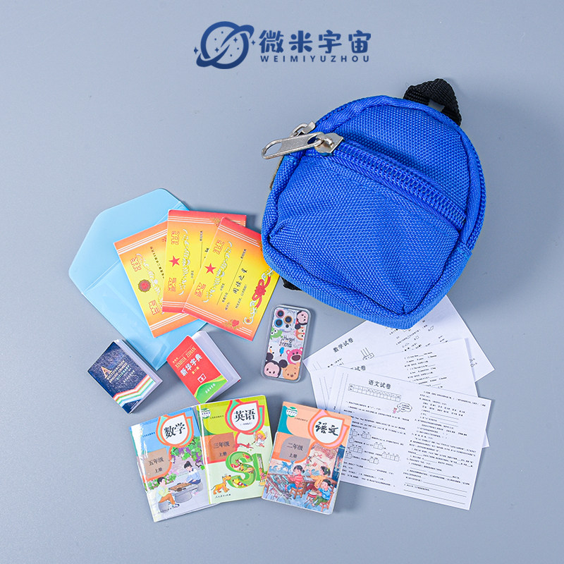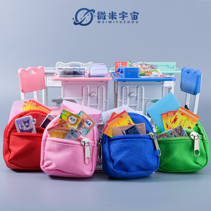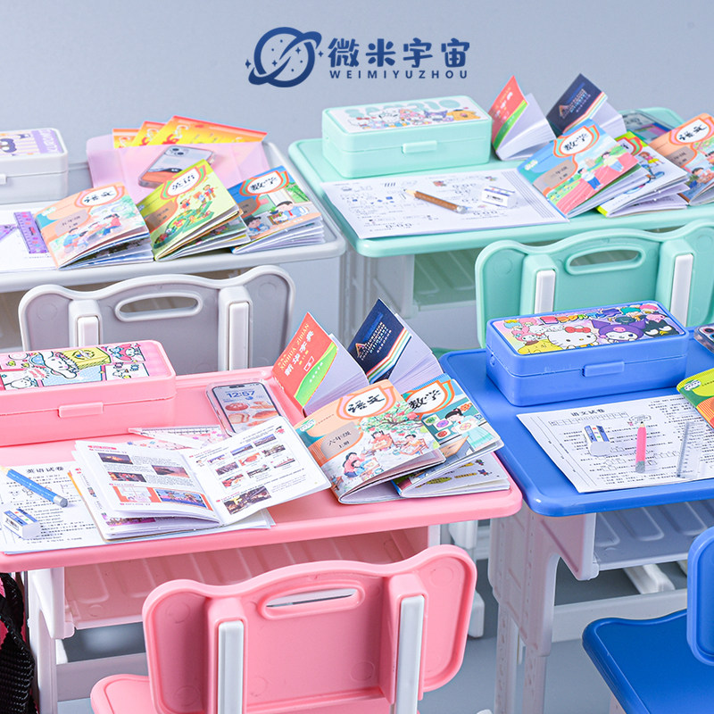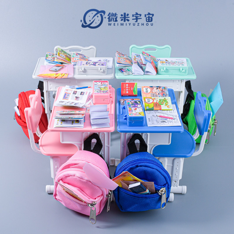 迷你课桌椅微缩仿真文具铅笔盒小书包书本课本娃娃屋配件模型玩具